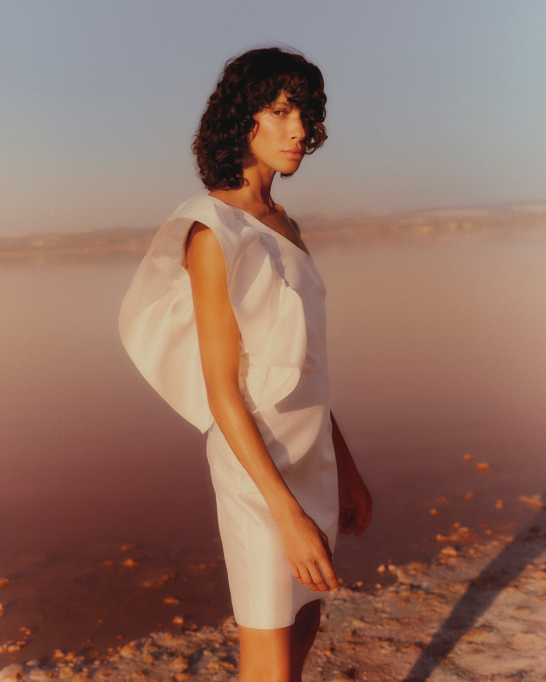 A sense of ease runs through the collection with wide, flowing silhouettes that whisper opulence or with slimmer, form-skimming shapes that celebrate a woman’s body. Open backs, bare shoulders and cropped tops allow ample opportunities to show a little sun-burnished skin. Versatility is key: a huge square dress can billow freely or be drawn into the body in multiple ways whilst slimmer dresses have tasselled cords to accentuate the waist. Elastic is used on cuffs and necklines which can be pulled up or down as you move from beach to bar. Silky shorts and wide pants have the same wide elastic to give a sporty yet glamorous look, especially when paired with a super wide shirt that falls into elegant draping.