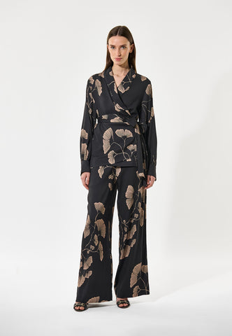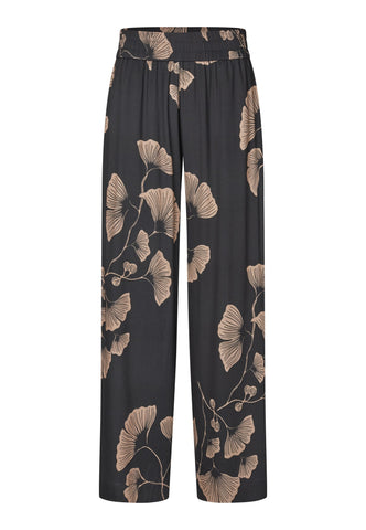 Wide leg pants in a fluid fabric like this viscose crepe have a timeless appeal and this pair in gingko leaf print with a wide elastic waistband are a great example. Wear with a simple top or a knit for an effortlessly chic outfit.