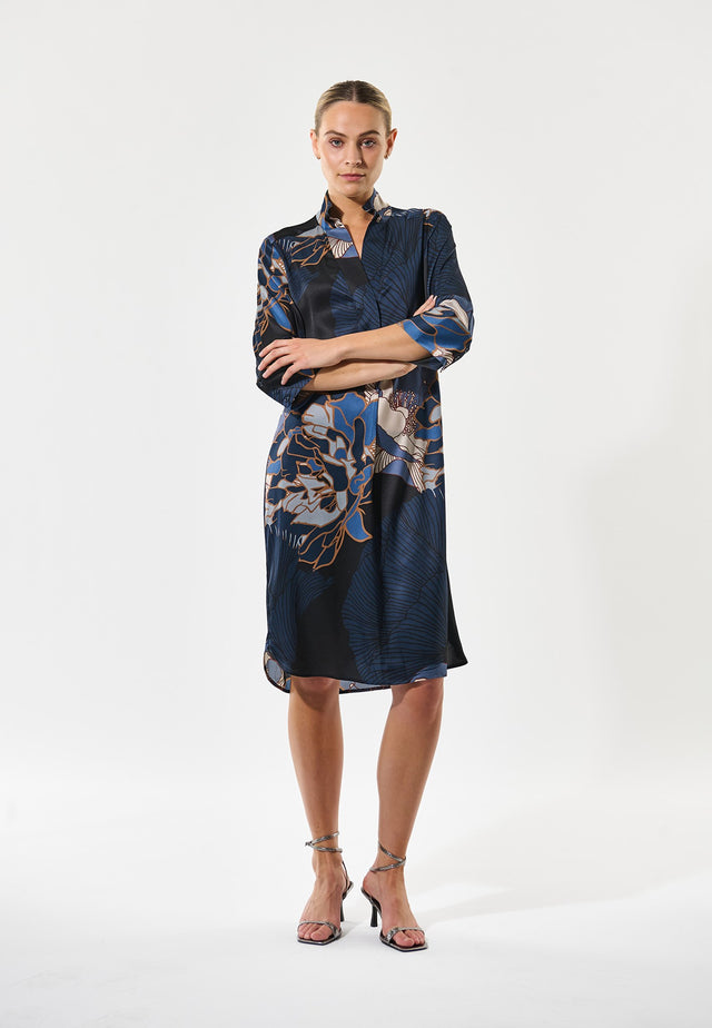 Surely one of DEA KUDIBAL’s most loved styles, this easy fit mid-calf length dress is perfect for all body shapes. The kimono neckline and collar give it a sophisticated elegance whilst the deep sleeves with cover buttons have a relaxed attitude. This chic version comes in a bold oversized print of Japanese camellias on silk twill.