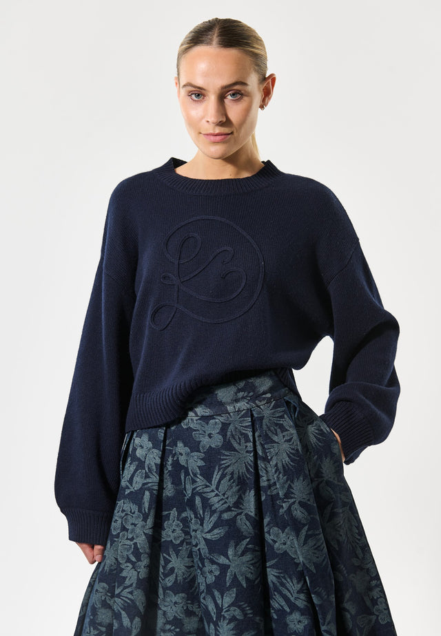 Knitted in a blend of viscose, wool, cotton and cashmere in a rich shade of caramel, this sweater is cosy and stylish. It has a wide, cropped shape with deep rib, full sleeves and a self-coloured embroidered logo on the front.