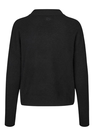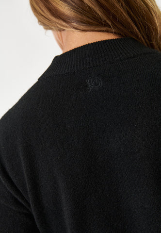 A round neck sweater in cashmere is an absolute wardrobe classic: versatile, timeless and very luxurious. This version in jet black has rib at the neck, hem and cuff and a small embroidered logo at the centre back neck.