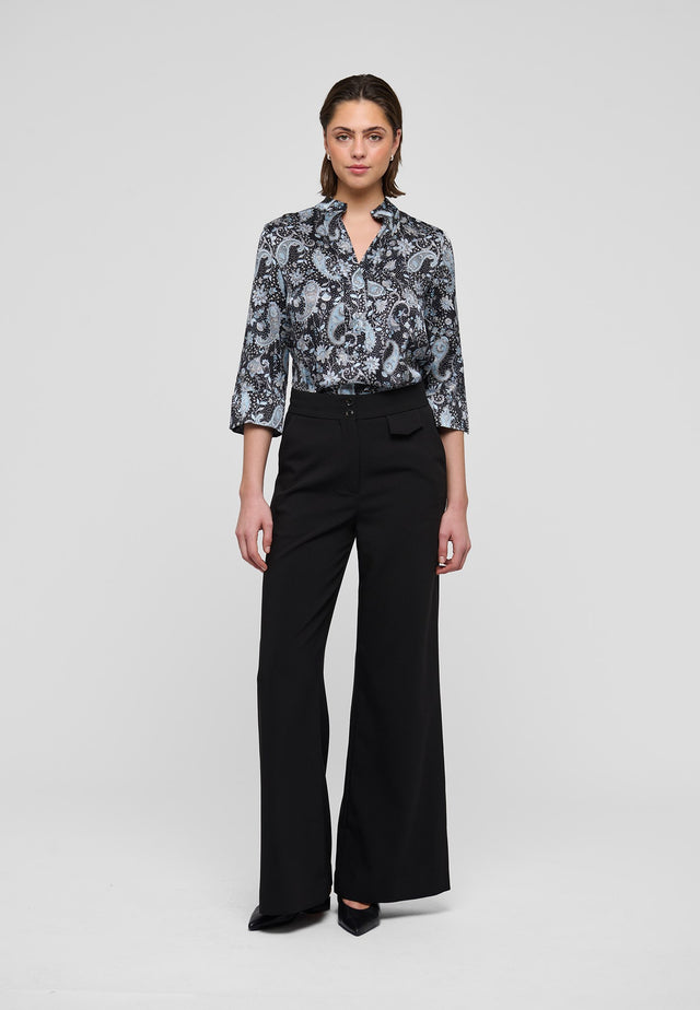 The minimalist details of this elegant regular fit silk blouse allow focus to stay entirely with the sophisticated paisley print. A stand collar leads down to a simple cross over placket whilst 3/4 length sleeves end with a deep cuff that echoes the style of a kimono.