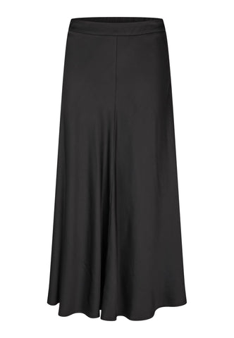 A bias cut skirt is a versatile and stylish wardrobe staple for any woman. This version in black stretch viscose satin skims the hips before falling to mid calf and has a waistband that is elasticated at the back.