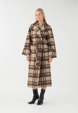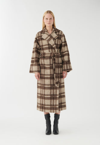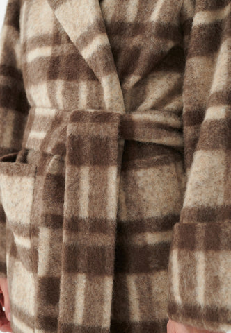 With cool, classic appeal, this wrap coat with tie belt and large pockets is perfect for chilly weather. The bold check in a wool and alpaca mix ensures both warmth and elegance.