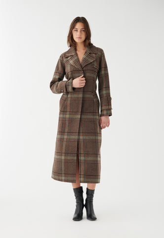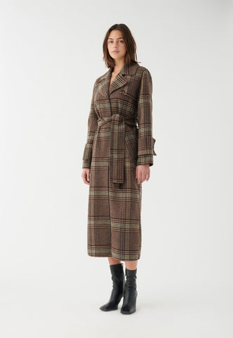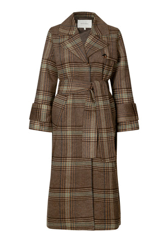 Perfect for winter days, this wool blend coat has a classic and timeless air of sophistication. The tie belt accentuates the silhouette whilst the oversized cuff details and bold check add a contemporary touch.