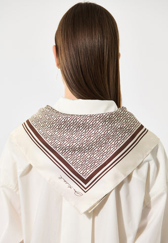 Printed with a sophisticated monogram design, this silk scarf is a chic and fun way to add a little detail to an outfit. Wear wrapped around the neck, in a pocket or tied to a handbag - the styling options are varied and individual.
