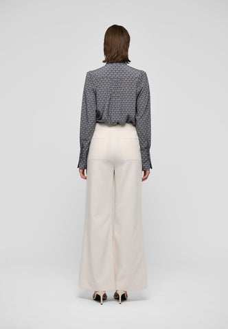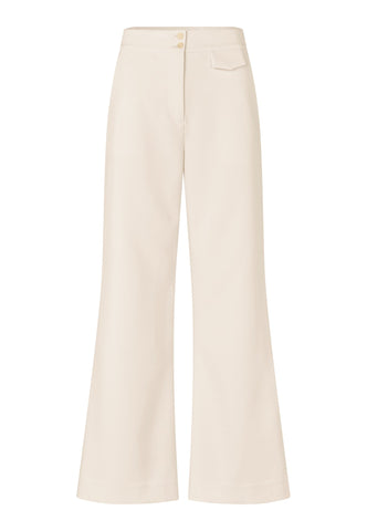 Sitting high on the waist, these chic trousers fit close over the hips and then drop into gentle flares. Made from viscose blend crepe in cream, they work beautifully with a silk blouse or as part of a suit with the Yasma blazer.