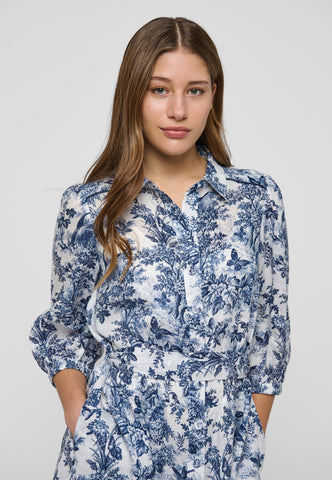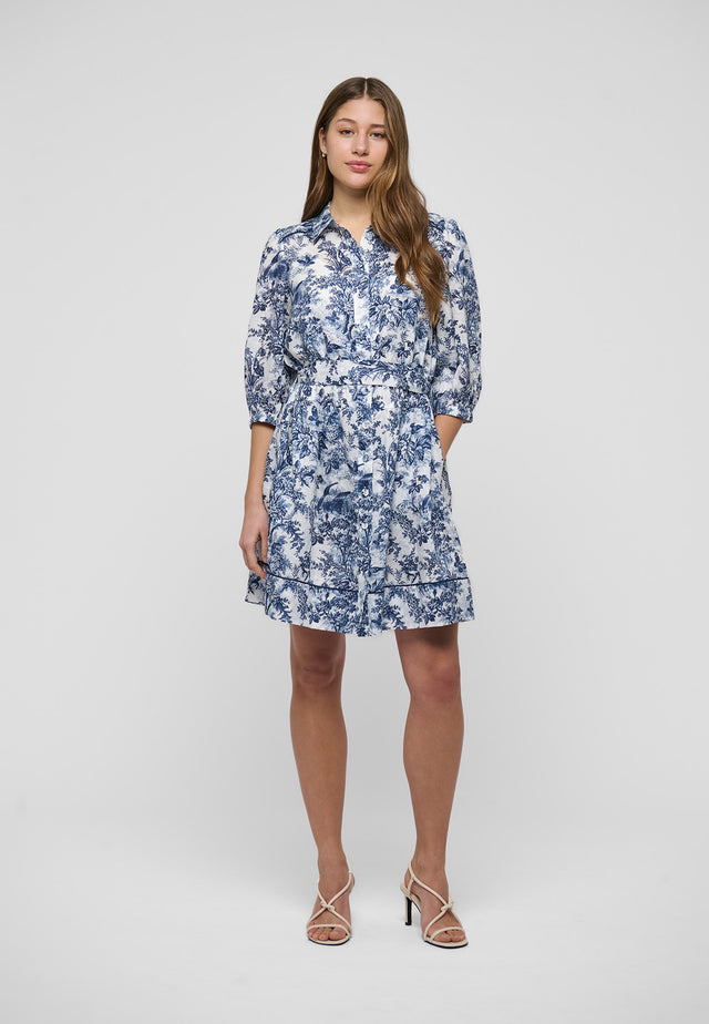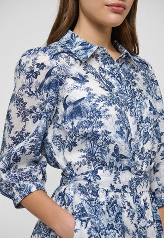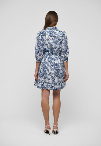 Relaxed and stylish for summer, this charming linen shirt dress in an intricate botanical print finishes just above the knee. A self fabric belt pulls in the waist and contrast piping at the hem and shoulders is a luxurious detail.