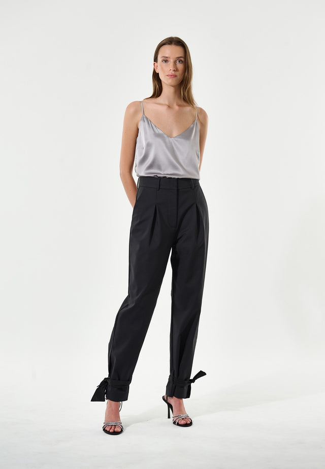 A camisole top is a versatile and stylish addition to any wardrobe. This regular fit version in silver silk satin hangs from adjustable spaghetti straps and is half lined in self fabric for a sense of real luxury.