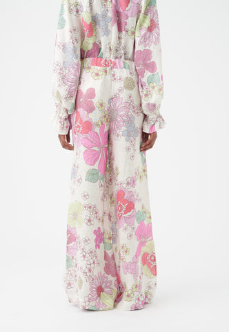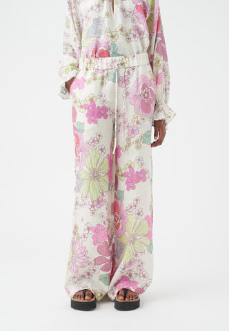 The bold floral print of these wide leg trousers give them an air of retro glamour but one that still looks fresh and chic. Pair them with a t-shirt or knit for day or a silky top for a beautiful evening look.