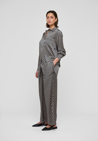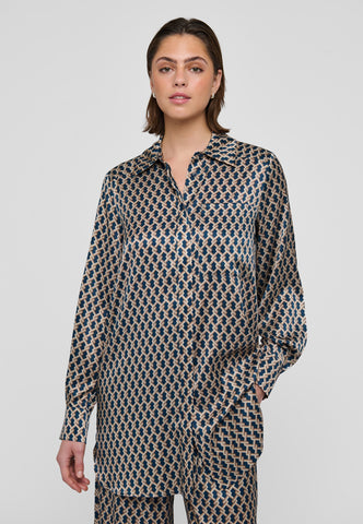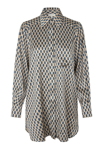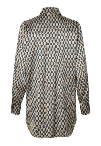 The simplicity of this oversized shirt allows the beautiful graphic print to speak for itself. It has a classic collar and fly front to keep things minimal. Wear it with jeans for daytime chic or pair with a skirt or pants for evening.