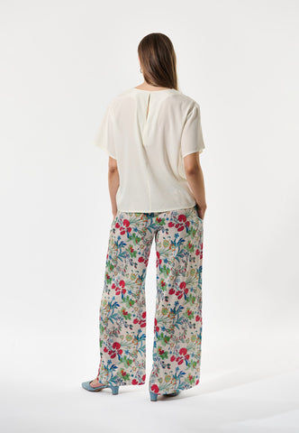 The minimalist purity of a simple t-shirt in deepest navy blue silk speaks for itself. Luxurious, sophisticated and timeless, it is in a regular fit with loose sleeves and closes with a single button and loop at the back neck. This top works perfectly under a blazer, paired with a skirt or even worn with jeans.